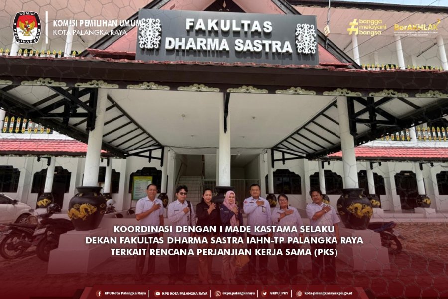 KPU Kota Palangka Raya melaksanakan koordinasi dengan I Made Kastama, selaku Dekan Fakultas Dharma Sastra IAHN-TP Palangka Raya, pada 13 Januari 2026 pukul 10.00 WIB, sebagai tindak lanjut dari Nota Kesepahaman (MoU) antara KPU dan IAHN-TP Palangka Raya.