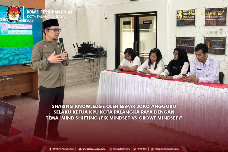Sharing knowledge oleh Bapak Joko Anggoro selaku Ketua KPU Kota Palangka Raya dengan tema Mind shifting (fix mindset vs growt mindset)