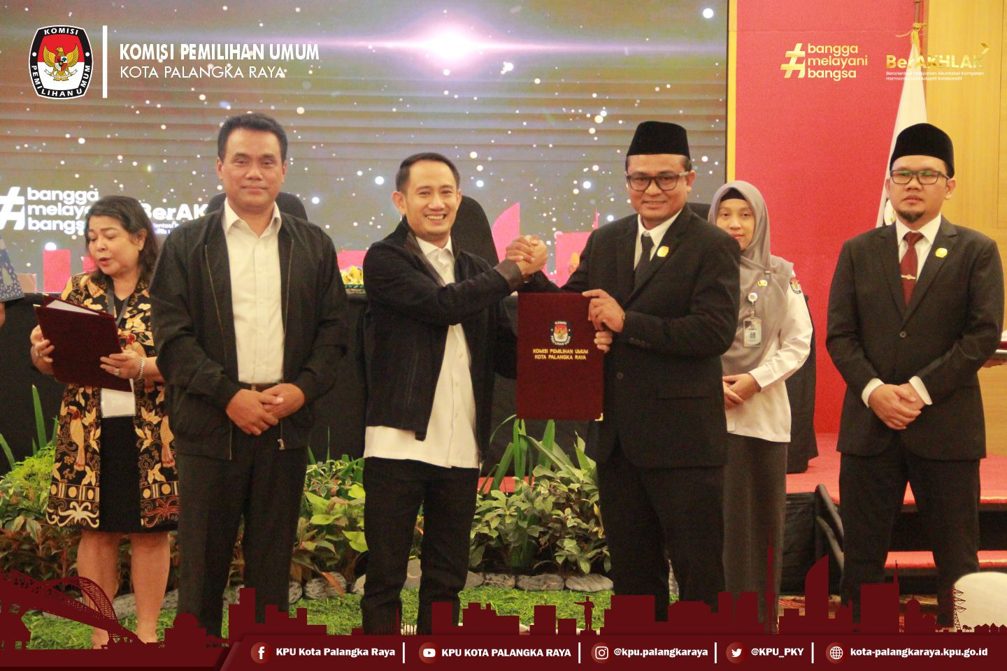 #TemanPemilih Komisi Pemilihan Umum (KPU) Kota Palangka Raya secara resmi mengumumkan Fairid Naparin dan Achmad Zaini sebagai Wali Kota dan Wakil Wali Kota terpilih untuk periode 2025-2030