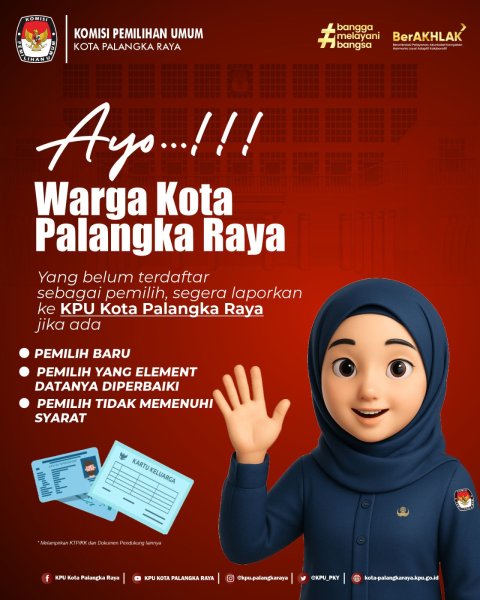 Untuk segera melaporkan diri ke Kantor KPU Kota Palangka Raya. Pastikan membawa dokumen pendukung seperti KTP-el dan Kartu Keluarga (KK).