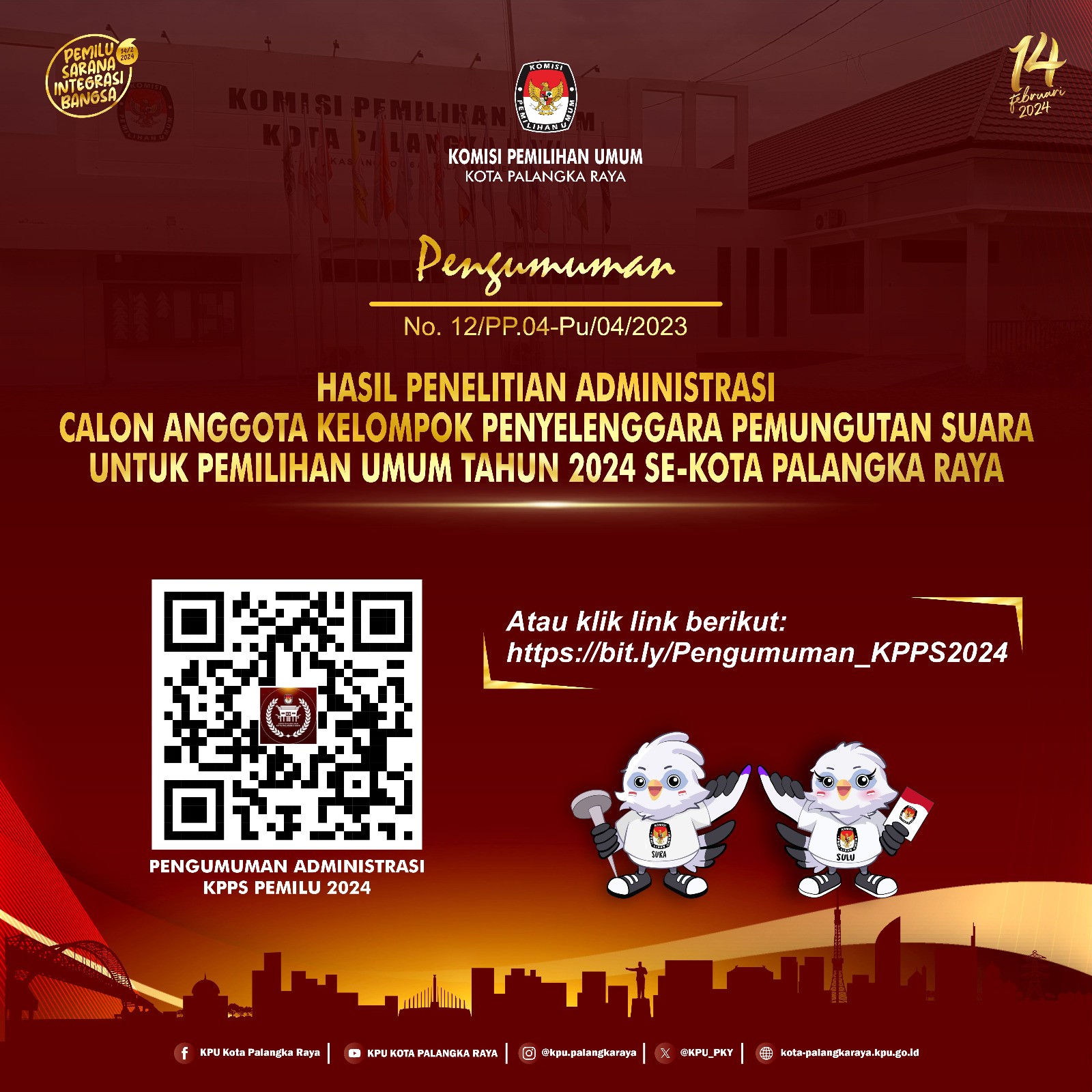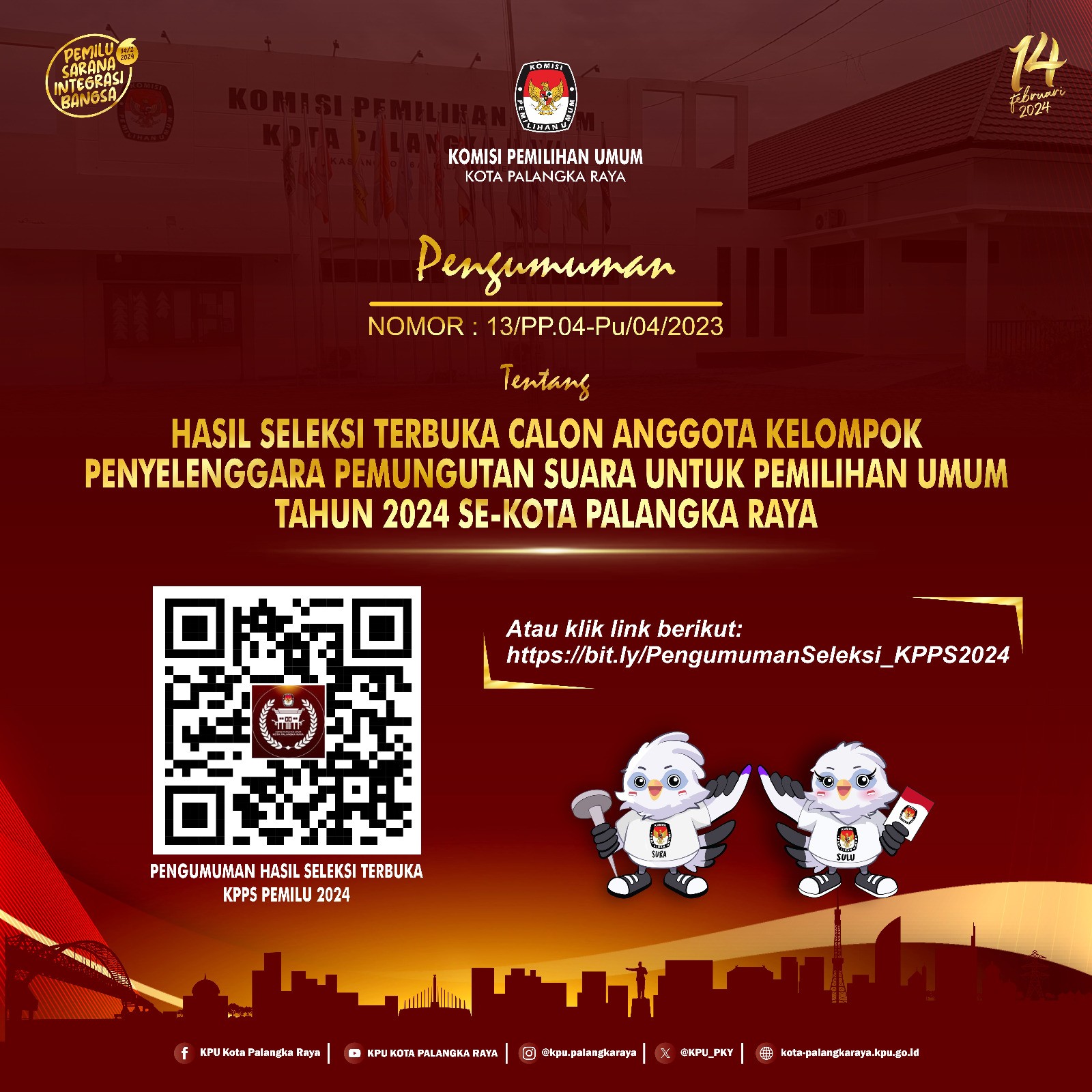 #TemanPemilih Pengumuman Hasil Seleksi Terbuka Calon KPPS Pada Pemilu Tahun 2024. Bisa #TemanPemilih akses di https://bit.ly/PengumumanSeleksi_KPPS2024 atau scan barcode di atas, atau klik tombol download di bawah ini.