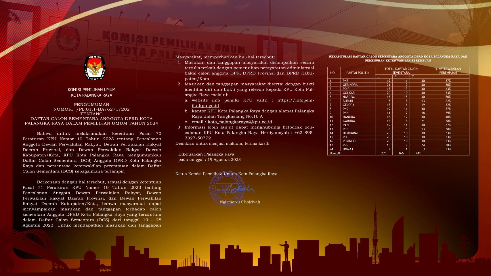 Pengumuman Pengajuaan Bacalon DPRD Kota Palangka Raya klik tautan di bawah ini untuk download